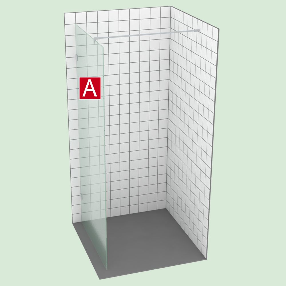 Dusch-Trennwand, festes Seitenteil --- Lieferumfang: 1x ESG-Sicherheitsglas 8mm, klar, als festes Seitenteil, 2x Winkelverbinder Wand/Glas 90°, 1x Stabilisations-Stange Wand/Glas 90°, 1250 mm (kürzbar).