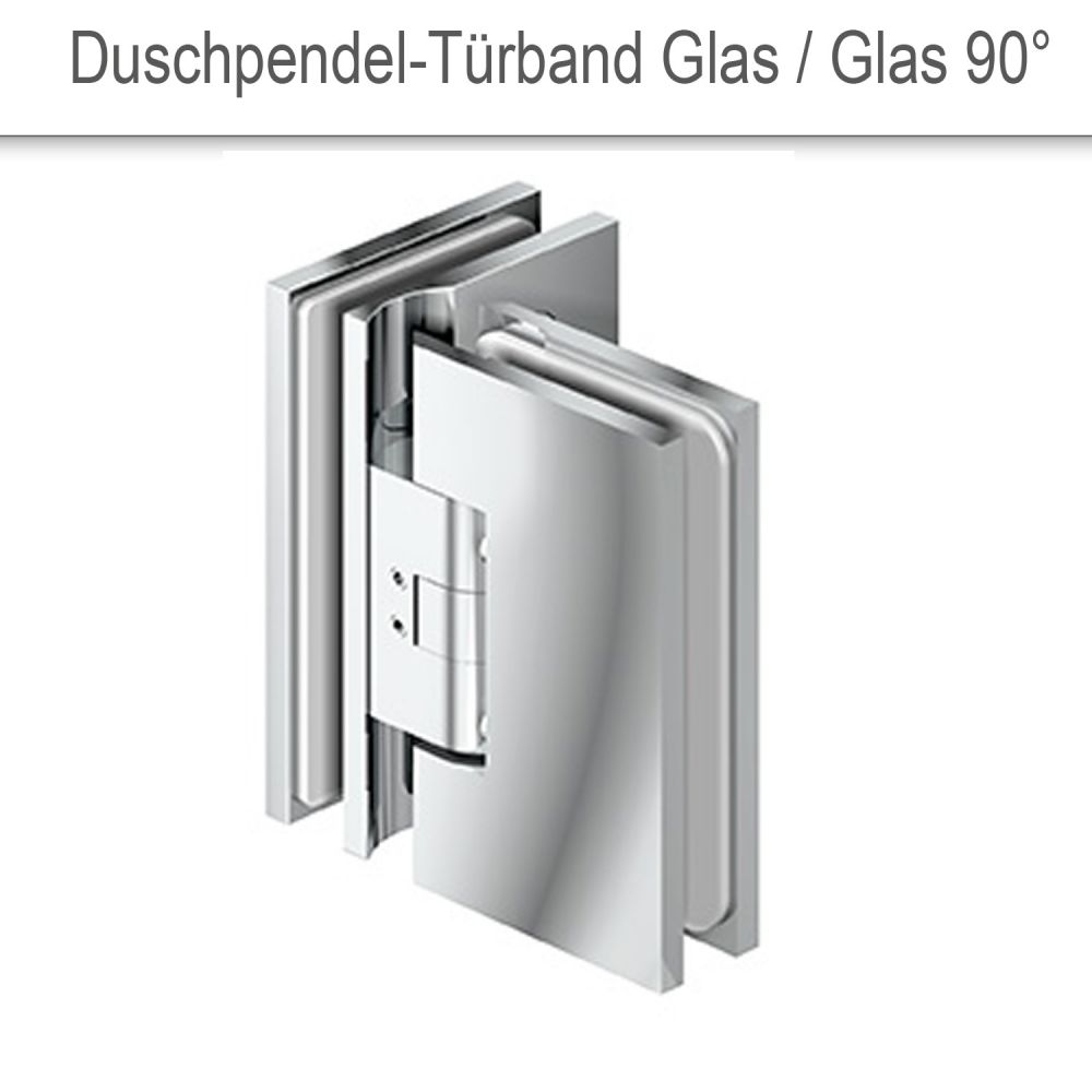 • 2x Duschpendel-Türband Glas/Glas 90°, Null-Lager einstellbar, Größe (B x H) 56/85,6 x 91 mm, Material: Voll-Messing, glanzverchromt